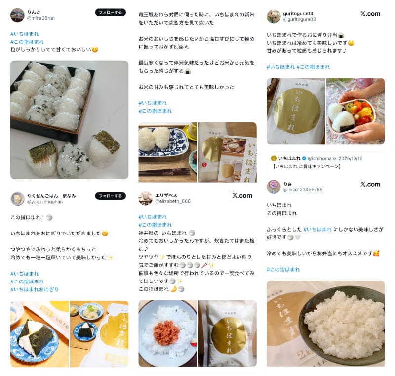 ・応募いただいた投稿内容は、「いちほまれ」公式サイト、SNSアカウント、その他媒体にてご紹介させていただく場合があります。また、お客様は権利主張及び請求・要求はできないものとします。