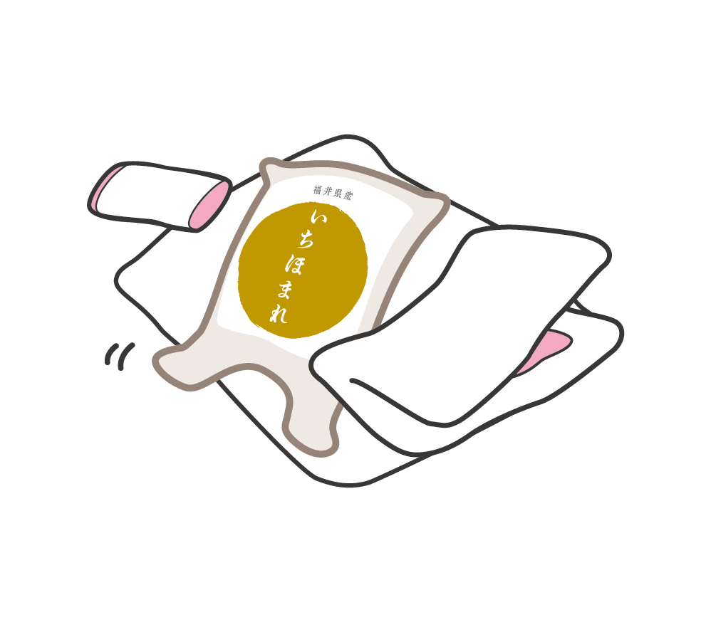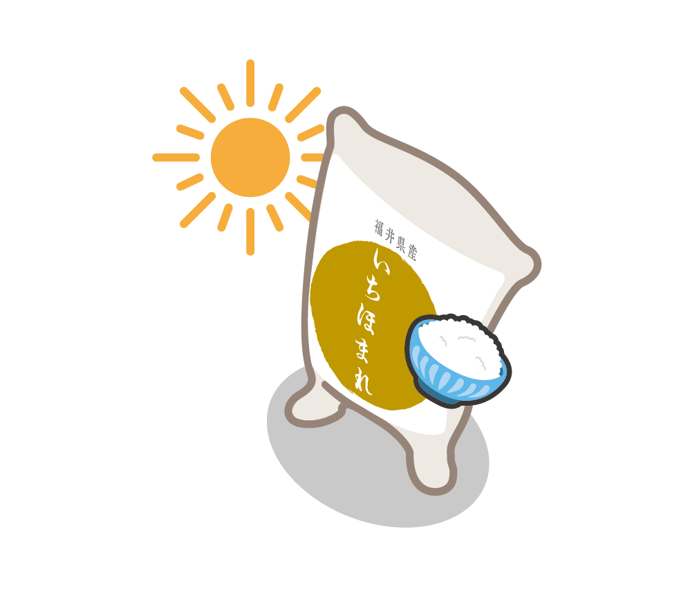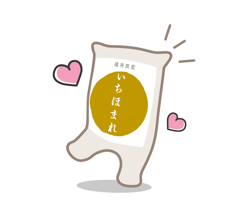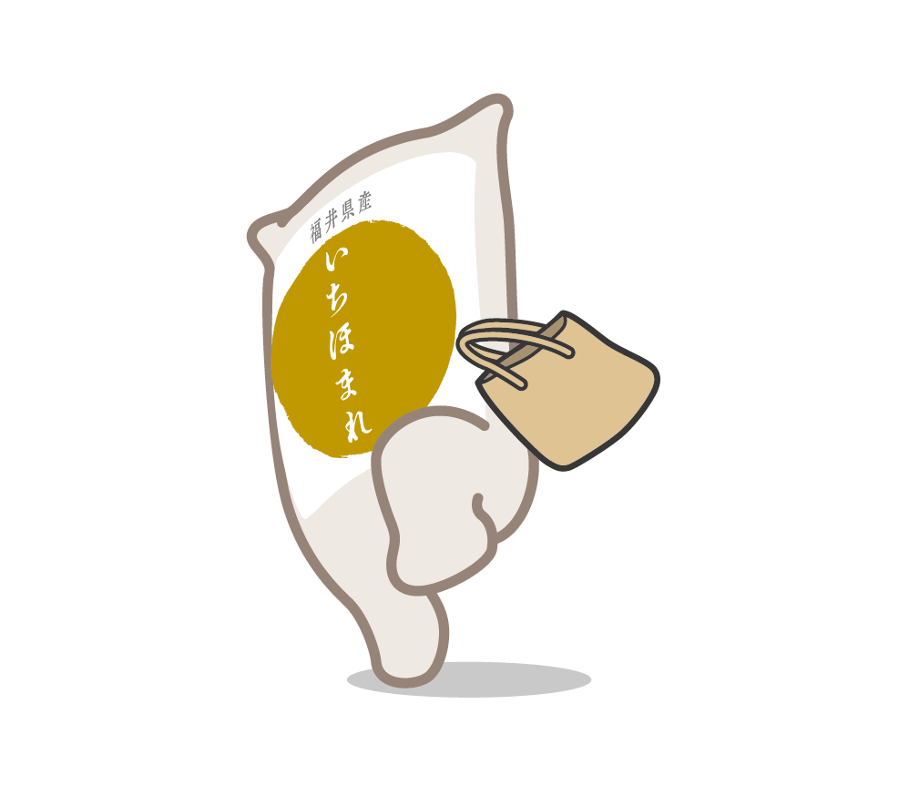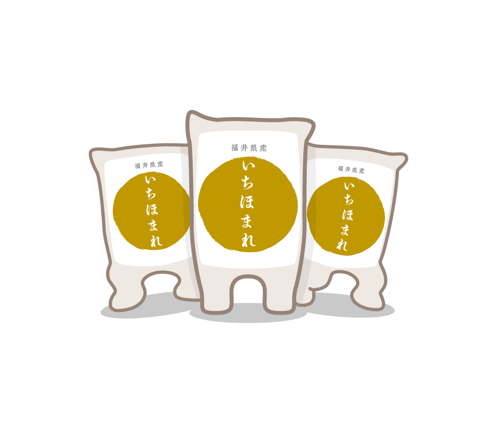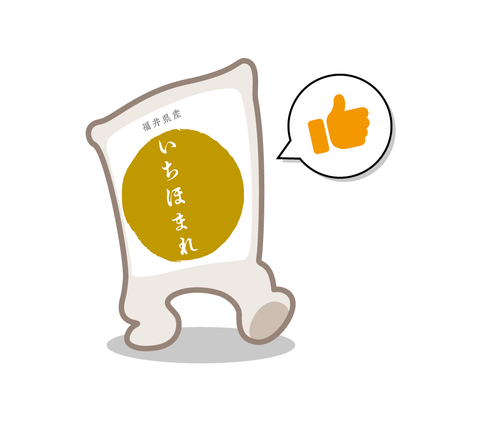 「いちほまれ」米袋キャラクターデザインを使用する場合は「いちほまれ米袋キャラクターデザイン使用取扱要綱」に基づき、事前に申請が必要です。また、米袋キャラクターデザインの使用方法については「デザインガイドマニュアル」に従って下さい。